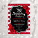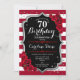 Invitación 70.º cumpleaños - Rosas de rayas blancas rojas de