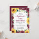 Estas invitaciones para la fiesta de cumpleaños número 70 cuentan con un borde floral acuático de girasoles, rosas de Borgoña y vegetación. Personalízalos con tu propio texto.