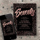 Empieza el fiesta en papel con este diseño de invitación de 70 años para adultos atrevidos y divertidos. La tipografía audaz y humorística y el confetti festivo en oro rosa sobre negro le dan a esta invitación una atmósfera elegante pero graciosa. Perfecto para la mujer que le gusta ser el centro del fiesta. ¡Pide tus invitaciones impresas o descarga tus invitaciones digitales ahora por un día que nunca olvidarán!