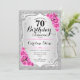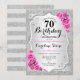 70.ª Invitación de cumpleaños. Elegante diseño floral en plata y rosa. Presenta rayas de plata purpurina falsas, letra de guión elegante rosa y confeti. Perfecto para una fiesta de cumpleaños glam.