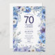 Invitación 70 cumpleaños floral, púrpura y azul, hito