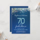 70 y Fabulous Blue Purpurina 70th Birthday Party Invitation. Celebre con estilo nuestro diseño de 40 y Fabuloso Birthday Invitation, una combinación perfecta de glamour moderno y elegancia intemporal. El azul profundo le da un toque sofisticado, mientras que la adición de acentos purpurinas le da un toque de encanto deslumbrante, haciendo que esta celebración de un hito brille de verdad. El diseño elegante y contemporáneo refleja la vibrante personalidad del celebrante, capturando la esencia de alcanzar la fabulosa edad de 40 años. Acompáñennos a una noche de glamour y alegría mientras brindamos por cinco décadas de fabulosos recuerdos e innumerables más por venir!