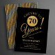 Cheers to 70 years! 70th birthday party invitation in black and faux glitter gold. Simple modern design, perfect for an elegant men's or women's bday celebration. Customize with your own details. Can be personalized into any age! Printed Zazzle invitations or instant download digital printable template.