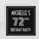 La fachada de esta elegante y inspirada tarjeta de invitación para fiestas de los años 1920-1930, inspirada en el estilo de la década de 1930, tiene un nombre personalizado, un elegante estilo Art Deco inspirado en el número "72", el mensaje "¡FIESTA DE CUMPLEAÑOS!" y un borde de varias líneas. Hay un fondo de color negro en el frente de forma predeterminada, pero se puede personalizar a un color diferente si se desea. En la parte posterior se incluyen detalles personalizados sobre el evento, como la fecha, hora, lugar/lugar y cualquier otra información importante. Elegantes, elegantes, invitaciones de personalizable como estas podrían ser usadas para invitar a los invitados a una reunión/fiesta de cumpleaños que se lleva a cabo para honrar el cumpleaños 72 de alguien. [~Z0000615]