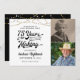 Invite a los invitados a una fiesta de cumpleaños 75 AÑOS EN EL HECHO con estas divertidas invitaciones en negro y oro que incluyen un diseño de título de tipografía retro, luces de cuerda y personalizadas con 2 fotos (quizás use las fotos Entonces y Ahora para un recuerdo memorable). CAMBIOS: cambie el estilo personalizado del tipo de letra, color, tamaño y ubicación del texto en EDIT. ASISTENCIA: Para obtener ayuda con la modificación o personalización del diseño, el cambio de color, el redimensionamiento, la transferencia del diseño a otro producto o si desea coordinar elementos, póngase en contacto con el diseñador ANTES DE PEDIDOS a través de la pestaña del MENSAJE de charla de Zazzle o envíe un correo electrónico a makeitaboutyoustore@gmail.com.