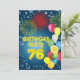 Una divertida invitación a la fiesta de cumpleaños número 76 con colores alegres, globos y fuegos artificiales. Ver toda la gama de invitaciones y tarjetas en mi tienda.