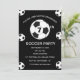 Séptima fiesta de cumpleaños para un hincha de fútbol, deportes, niños, chicos, para él. Blanco y negro, moderno, elegante invitación a la fiesta de cumpleaños. Por favor, personalícelo con sus detalles.