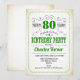 Invitación 80.ª fiesta de cumpleaños - Blanco y verde retro c