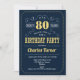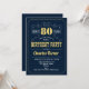 80.ª Invitación a la fiesta de cumpleaños. Elegante diseño retro azul marino, dorado y blanco con letra de guión. ¡Saludos a 80 años! Mándame un mensaje si necesitas más personalización.