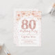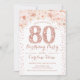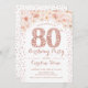 Invitación a la fiesta de cumpleaños número 80 para las mujeres. Elegante carta de invitación floral con rosa falso purpurina dorado y blanco. Cuenta con número de diamante, tipo de letra de guión y rosas rosa de color rosa. Perfecto para una elegante celebración del día de los hitos para adultos.