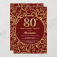 Invitación 80.º cumpleaños Burgundy Red y Patrón Floral de Or
