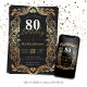 Invitación 80.º cumpleaños oro negro glamoroso Boho elegante