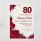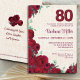 Invitación 80.º cumpleaños - Red Peonies Linen 80 años