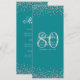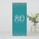 Invitación 80.º menú Cumpleaños Plata Confetti Turquesa