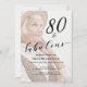 80 and Fabulous Eightieth Birthday Photo Script Invitation, classic script design 80th birthday invitation you can personalize and send out for your birthday party celebration. The words "80 and Fabulous" are set using popular typography for a clean minimal lovely look. Upload your favorite photo of the birthday celebrant, the opacity can be changed using the edit menu. The coloring in the photo can accent your chosen decor.