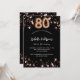 Un fondo negro clásico, decorado con estrellas doradas subió. Personalice y agregue un nombre y detalles del fiesta. El número se escribe con un guión de estilo globo.