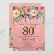 80.a invitación del cumpleaños del oro del rosa de la sorpresa floral color de rosa del purpurina para las mujeres. Flor floral de la acuarela. Antecedentes color de rosa del purpurina del rosa del oro. Flor rosada, amarilla, anaranjada, púrpura. Cumpleaños adulto. décimotercero décimo quinto décimosexto décimo octavo vigésimo 21ro trigésimo 40.o 50.o 60.o 70.o 80.o 90.o 100o, cuaesquiera edades. Para el arreglo para requisitos particulares adicional, haga clic por favor el "personalizar él" botón y utilice nuestra herramienta de diseño para modificar esta plantilla.