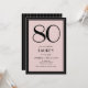 Invitación 80th Birthday Women's Modern Minimal Black Pink