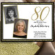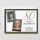 This pretty white, black and gold 80th birthday invitation for her includes two customizable photos with a faux foil paper texture, and will set a fun and celebratory tone. Note: The foil border is printed and not actual shiny foil!