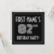 La fachada de este estilo de los años 1920-1930 inspiró la celebración de 82 años/diseño de la tarjeta de invitación a fiestas con un nombre personalizado, un intrincado estilo Art Déco inspirado en el número "82", el mensaje "¡FIESTA DE CUMPLEAÑOS!" y un borde multilínea. El frontal también presenta un fondo de color negro de forma predeterminada, pero se puede personalizar a un color diferente si se desea. La parte posterior incluye detalles personalizados sobre el evento, como la fecha, hora, lugar y cualquier otra información que pueda ser útil. Invitaciones elegantes, lujosas y personalizadas como estas podrían ser usadas para invitar a asistentes/invitados a una reunión/fiesta de cumpleaños que se celebra para celebrar el cumpleaños 82 de alguien. [~Z0000615]