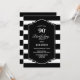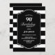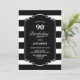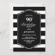Invitación a la cena de cumpleaños 90 con rayas blancas y negras. El texto es totalmente personalizable para permitirle incluir toda su información para la celebración de su cumpleaños.