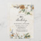 Las elegantes flores blancas están enclavadas en la vegetación de los pinos de invierno y en los pinares. El diseño floral está enmarcado por un suave lavabo acuarela de marfil infundido con flecos de oro suave. Perfecto para Navidades o fiesta de cumpleaños.