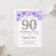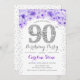 Invitación 90.ª Fiesta de Cumpleaños - Púrpura Plata Blanca