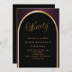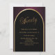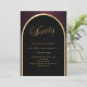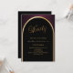 Una elegante invitación de cumpleaños número 90. Un fondo negro y borgoñoso con un arco dorado en la parte delantera.