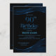 Invita a tus amigos y seres queridos a celebrar tu cumpleaños número 90 con esta elegante invitación de cumpleaños en negro y azul.