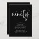 Este diseño moderno, blanco sobre negro, presenta la palabra "noventa" en una caligrafía estilo script y una tipografía moderna y elegantemente espaciada que incluye fuentes serif clásicas. Las invitaciones se revertirán a un delicado patrón triangular repetitivo en gris negro y cromático. Adecuado para hombres o mujeres. Elija entre invitaciones Zazzle impresas con diferentes estilos de esquina y magníficas existencias de papel, o descarga instantánea si lo necesita ahora, o ambas cosas para que pueda enviar papel e invitaciones digitales según sea necesario.