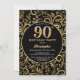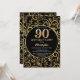 Invitación 90.º Nacimiento Patrón Floral Negro y Oro