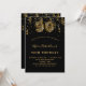 Una invitación moderna, elegante y glamurosa para una fiesta de cumpleaños número 90. Un fondo negro, decorado con confeti. El nombre está escrito con una escritura de estilo con letras a mano moderna. Personalice y agregue los detalles de su fiesta. El número 90 está escrito con un tipo de letra a la moda, un patrón de leopardo.