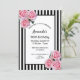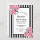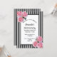 Invitación 90 cumpleaños flores rosadas rayas blancas negras