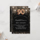 Invitación 90 cumpleaños purpurina de oro negro despierta luj