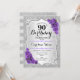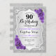 Invitación 90° cumpleaños - Rosas morados de rayas plateadas