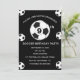 Novena fiesta de cumpleaños para un hincha de fútbol, deportes, niños, chicos, para él. Blanco y negro, moderno, elegante invitación a la fiesta de cumpleaños. Por favor, personalícelo con sus detalles.