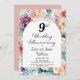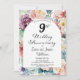 Invitación 9.º Aniversario Boda Elegante Script Floral