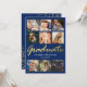 Invitación 9 Collage de fotos Fiesta de Graduación Azul Dorad
