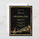 Una moderna y moderna carta de invitación para fiestas de 50 años para hombres y mujeres. Un fondo negro clásico, con un marco dorado falso y notas musicales, letras de colores dorados. Plantillas para la información de su fiesta. Fondo blanco. Sugerencia: Si no desea que se vea como una postal, haga clic en personalizar, vaya a la parte posterior y quite el separador y el sello postal.