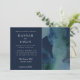 Elementos: tonos oscuros ricos, fondo de acuarela abstracto, detalles de marcos claros y tipos de letra serif clásicos. Colores: azul, verde, marino, azul polvoriento, azul acero, azul pizarra, verde salvia, cazador, tierras altas, menta. Temas: moderno, contemporáneo, abstracto, monótono, bajo el mar, océano, tonos oscuros, minimalista, pintoresco, bohemio. Colección: Colección de Bodas de acuarela de la Marina Moderna Esmeralda Abstract. Tipo de producto: Invitaciones de boda