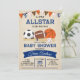 ¡Celebra tu futuro All-Star con nuestra Invitación Personal Sports Baby Shower! Este diseño animado y deportivo es perfecto para dar la bienvenida a tu pequeño al mundo. Personalizar con sus detalles para un evento memorable que seguro va a ganar mucho!