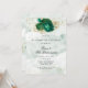El diseño presenta una estampada de colores con elementos florales en tonos de verde esmeralda sobre hojas de oro y flores de peonía sobre un fondo de color verde claro y color dorado purpurina. ¡Genial para las celebraciones de sus bodas!
