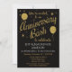 Esta divertida invitación a la fiesta de aniversario de un boda festivo tiene fondo negro con falsos globos purpurinas de oro y estrellas. Tiene un estilo elegante y caprichoso, con un toque elegante. A tu pareja de aniversario le encantará esta elegante invitación, al igual que a tus invitados. ¡Para el 5, 10, 15, 20, 25, 30, 35, 40, 45, 50 o cualquier otro!