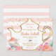 The invitation features tea pot outline with teacups and blush flowers. It's perfect for a girl baby shower tea party,