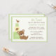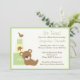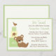 Esta tierna invitación de Baby Shower de Twins está esperando ser personalizada con tus detalles. Esta invitación verde incluye un oso adorable, bloques de bebé y las palabras "¡Son gemelos!" © Cocoa Studio