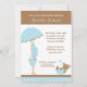 Esta linda invitación azul polka dot Baby Shower presenta una silueta de mujer embarazada con un paraguas y un lindo oso de peluche y está esperando ser personalizada con tus detalles. Esta moderna y elegante invitación a la ducha de bebé es perfecta para cualquier madre. © Cocoa Studio