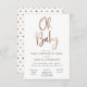 Baby Shower por invitación por correo con "Oh Baby" en una divertida caligrafía grabada con falso Relieve metalizado metálico de oro. La polka de oro se pega al revés. Personalizar con tu foto en el trasero.