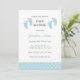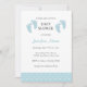 Invitación a la ducha de bebé con diseño de pies de bebé azules.