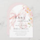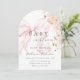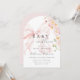 Celebra la feliz llegada de una niña pequeña con nuestra invitación a la ducha de bebé "Baby in Bloom". Esta encantadora carta cuenta con flores de acuarela delicadas, de color rosa pastel, en tonos rosas y un hermoso arco rosa ilustrado.
