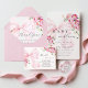 Celebra la feliz llegada de una niña pequeña con nuestra invitación a la ducha de bebé "Baby in Bloom". Esta encantadora carta cuenta con flores acuáticas suaves y delicadas en tonos rosas y un hermoso arco rosa ilustrado.